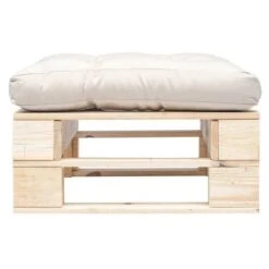 Pouf De Jardin Coussin Crème Et Palette Pin Massif Clair Farsa