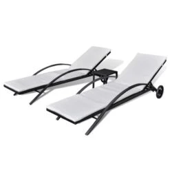 Chaises Longues 2 Pcs Avec Table Et Coussins Acacia Solide 19
