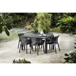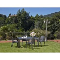 Lot De 4 Fauteuils De Jardin Monobloc Empilable Capri – 56 X 58 X 90 Cm – Gris Anthracite